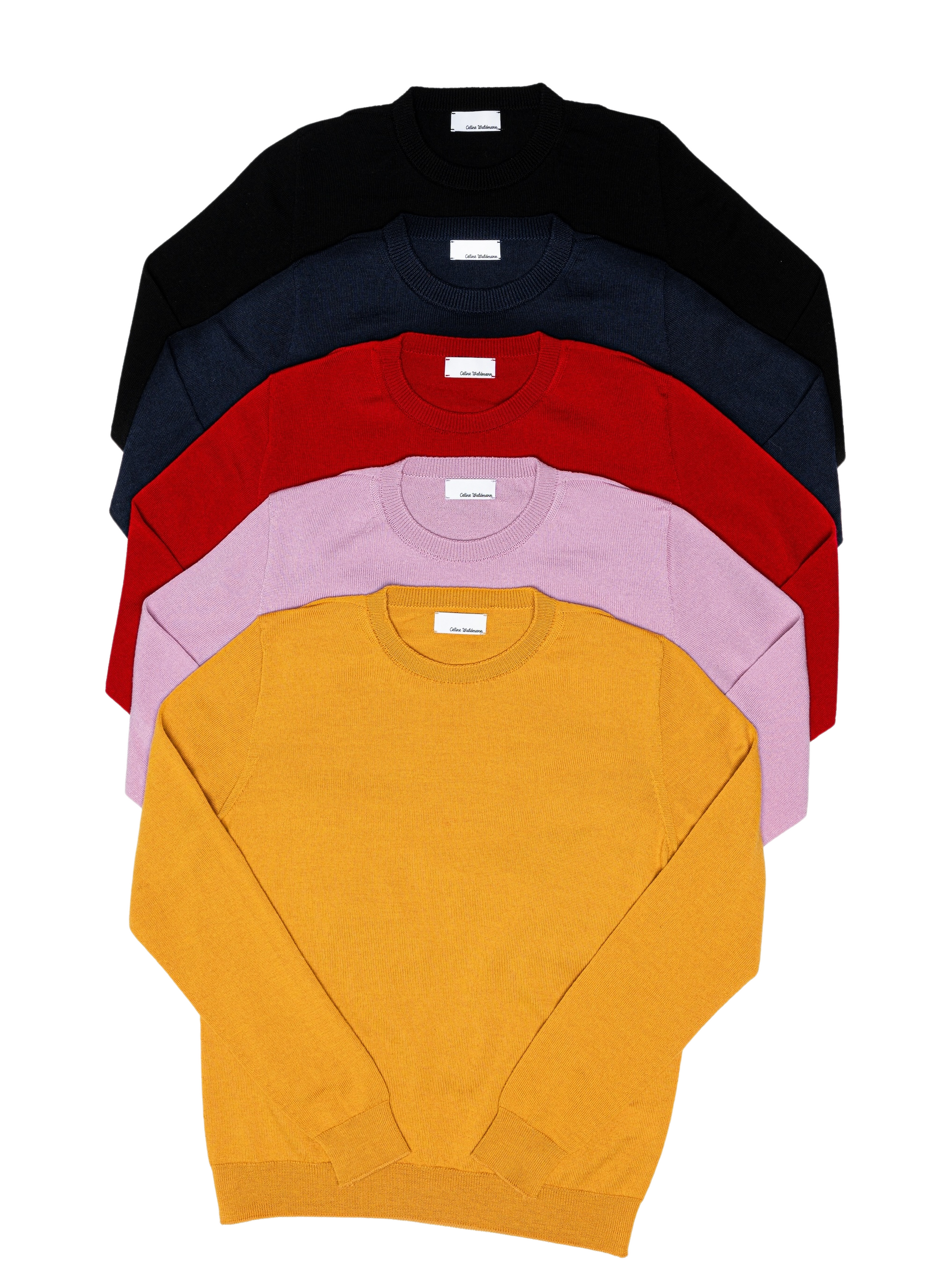 100% Italian Merino wool. The yarns used in our sweaters are reviewed by third parties for ecological and social accountability.