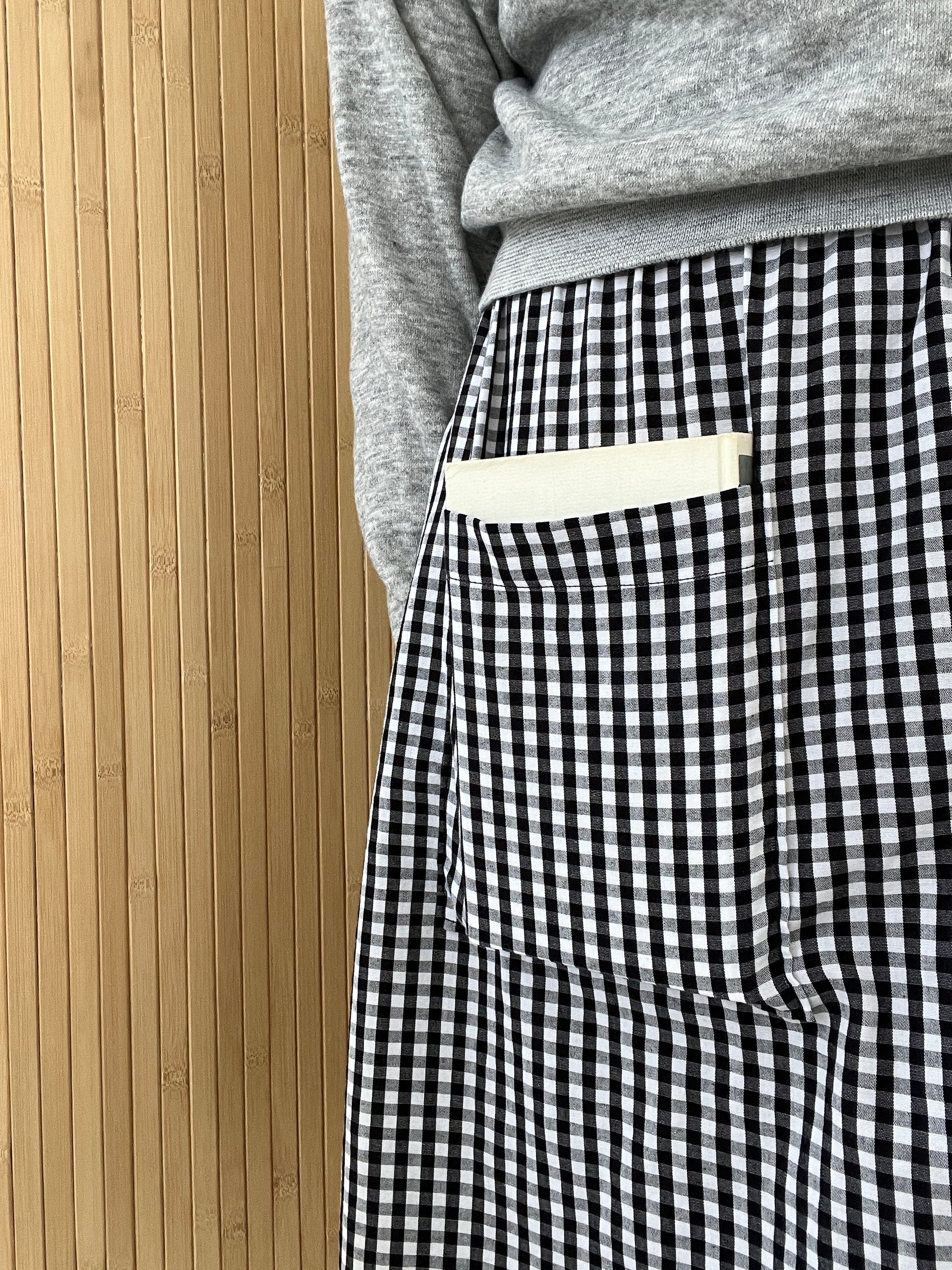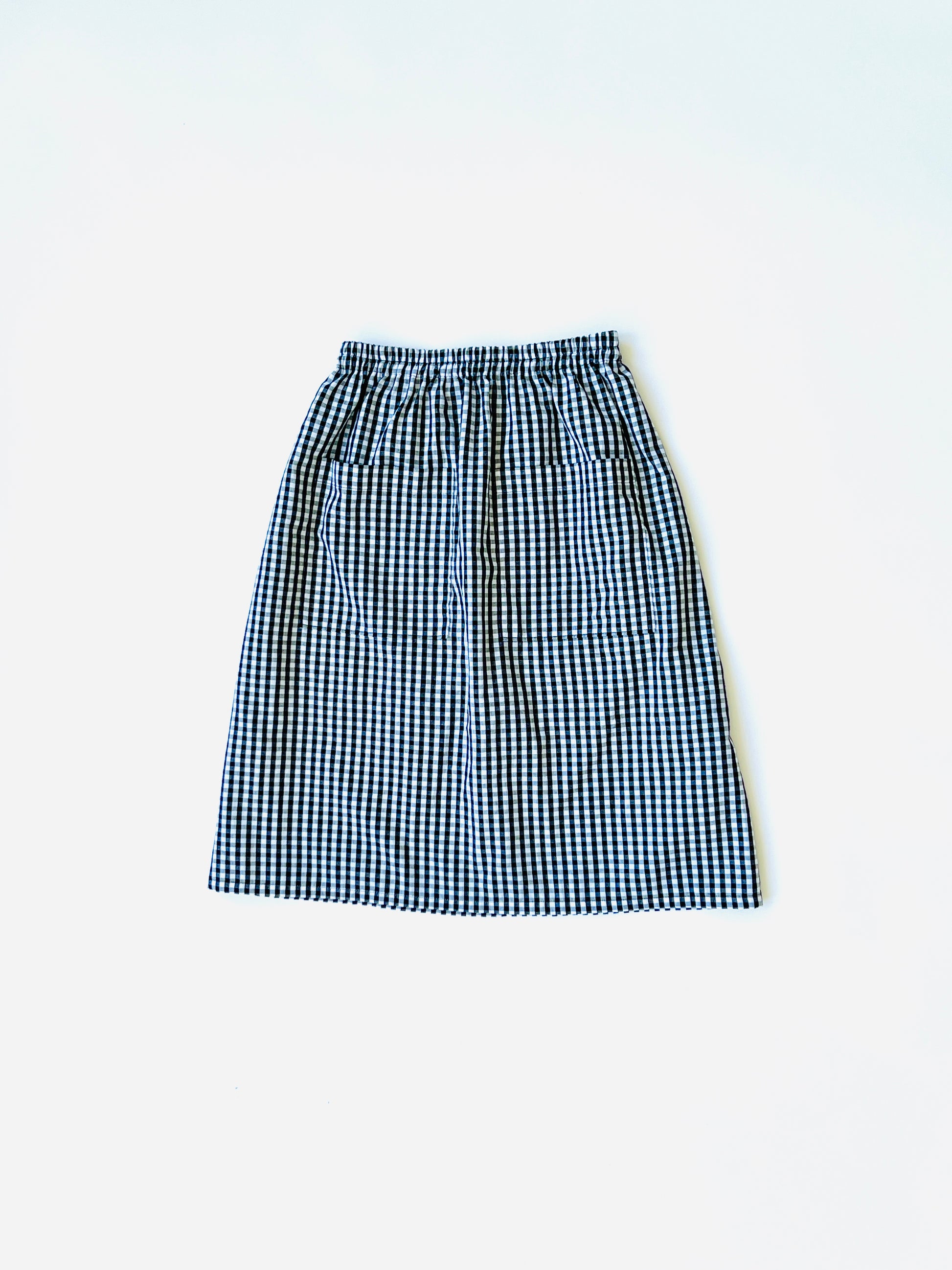 An organic cotton skirt, long enough so your bare legs don't touch the seat on the bus in the summer, which is a personal pet peeve. Featuring our signature generous book pockets in the front, this is a pull-on skirt that's full enough to feel breezy in the summer, but not so voluminous that you're drowning in fabric.