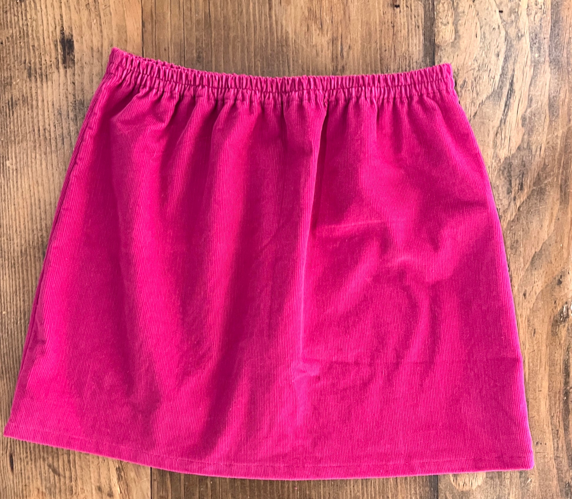 The ultimate pull-on and go piece. A mini skirt with an elastic waist. The same fit as the Pony Mini, but without pockets. When you want a more streamlined look and don't want to bring anything with you. Akira is 5'8" and is wearing size XS in black and S in hot pink.