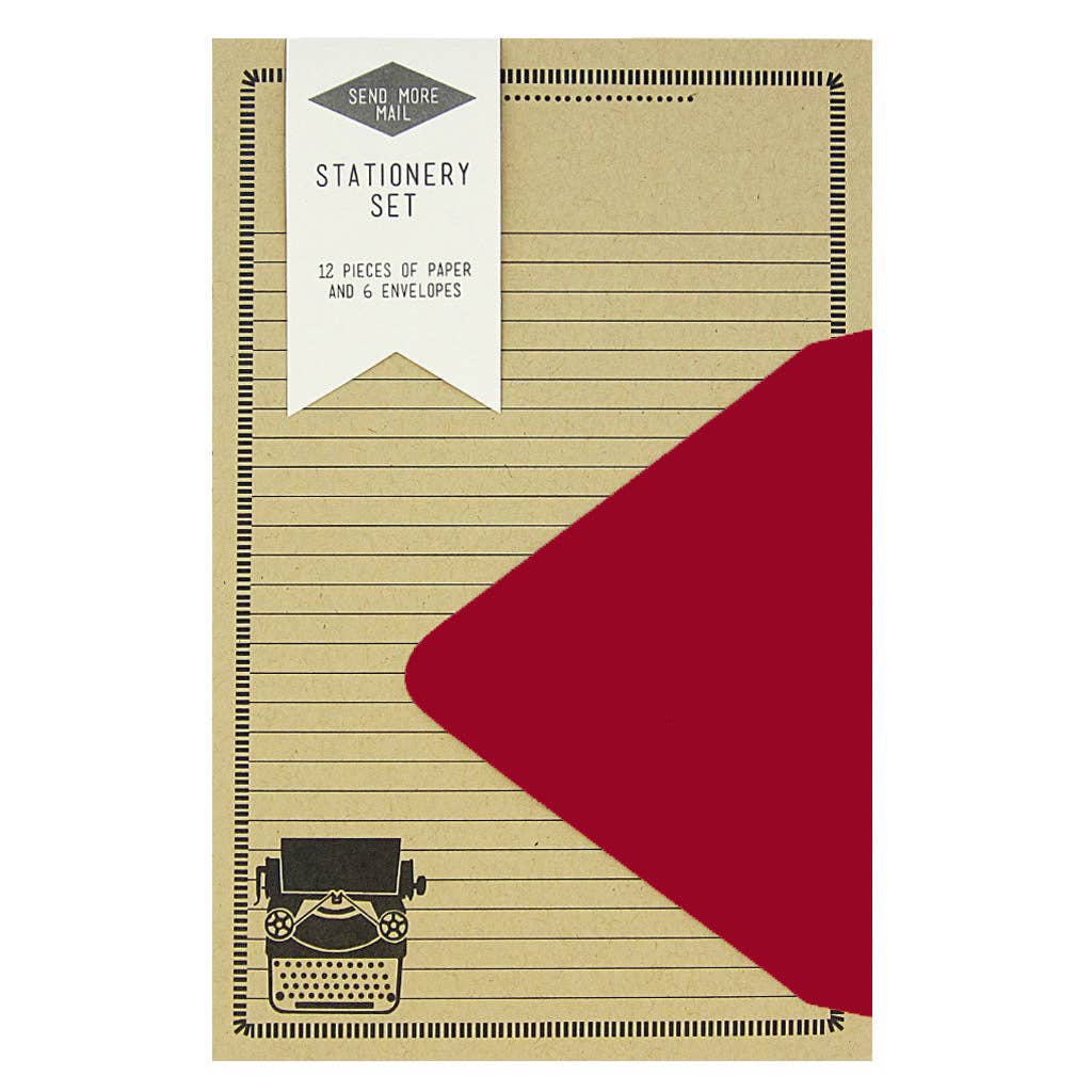 This stationery set comes with 12 identical single sided typewriter themed pieces of paper and 6 red envelopes. Paper folds in half to fit inside the 4 ¼” x 5 ½” envelopes.